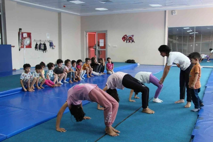 Spor salonunda minik öğrenciler jimnastik dersi alarak hem eğlenceli vakit geçiriyor hem de esnek bir vücuda sahip oluyor. Jimnastik sporuna 4-12 yaş arası çocukların büyük ilgi gösterdiğini dile getiren Jimnastik Antrenörü Medine Türkmen, minik çocukların nezih ve güzel bir ortamda jimnastik antrenmanı yaparak güzel vakit geçirdiklerini söyledi. Küçük yaşlarda spora başlamanın önemine değinen Türkmen, “Sporcularımız 4 ile 12 yaş gurubu arası içerisindeler. Bu süreçte 4 yaşındaki sporcularımızı deneme ile almaktayız ve 5 yaşından itibaren yarışmalara hazırlıyoruz. Yüzün üzerinde aktif sporcumuz mevcut. Geldiğimiz süreç içerisinden bu yana tabi pandemi de bizi etkilemekteydi. Bu süreçte 3 defa Anadolu Yıldızlar liginde yarı final gördük. Sporcularımızın hedefleri daha büyük hedeflerimize ulaşmak için daha sık çalışmaktayız. Sporcularımızın küçük yaşta seçmemizin tek sebebi daha esnek vücuda sahip olmaları ve bu çocukları temel eğitime işlememiz gerekiyor. Öğrencilerimizin yarışmalara katılması gereken durumlardan dolayı önce jimnastik hareketlerimizi değerlendirip çocuğa vücudunu tanıtıyoruz. Daha sonra ilerleyen süreçte çocuk performans sporcusu oluyor” dedi.