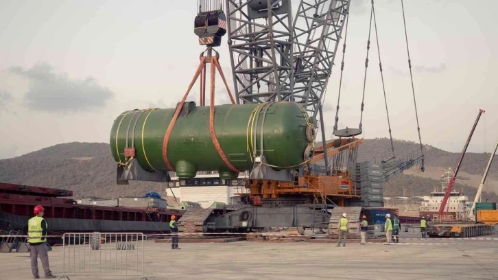 Akkuyu Nükleer Güç Santralinin (NGS) 2’nci güç ünitesi için üretilen 4 buhar jeneratörü, sahada bulunan Doğu Kargo Terminaline ulaştırıldı. Buhar jeneratörleri, ağır paletli vinç yardımıyla kargo gemisinden başarıyla indirilerek özel bir komisyon tarafından giriş kontrolünden geçirildi. Ekipman bu kontrolün ardından kalite ve bütünlük denetiminin gerçekleştirileceği geçici depolama sahasına nakledildi.