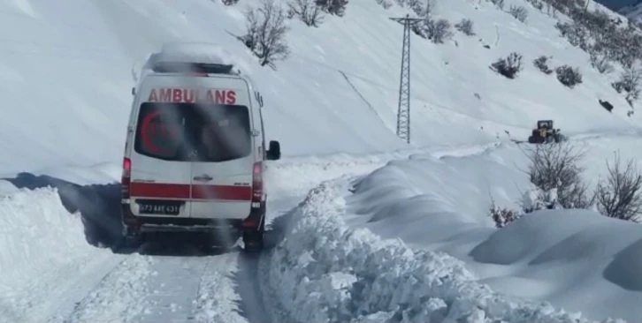 Şırnak’ta kar yağışı nedeniyle yolu kapanan köyde rahatsızlanan şahıs, 5 saat süren çalışma ile hastaneye ulaştırıldı.