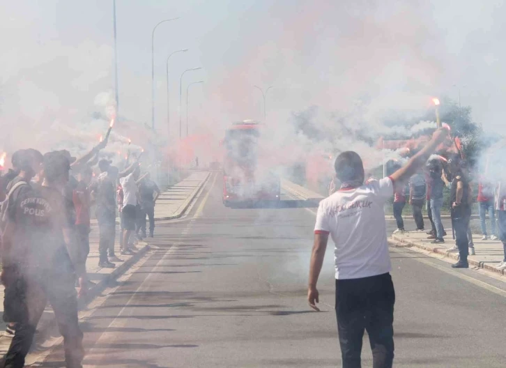 Teknik Direktör Rıza Çalımbay yönetimindeki Sivasspor, sabah saatlerinde Sivas Nuri Demirağ Havalimanı’na gitmek üzere kulüp tesislerinden ayrıldı. Bir grup taraftar ise, havalimanında takımlarını meşale yakıp ve tezahüratlarda bulunarak uğurladı. Takım otobüsünün önüne geçen ve fotoğraf çektiren taraftarlar, takımlarına olan desteğini tezahüratlarla sürdürdü.