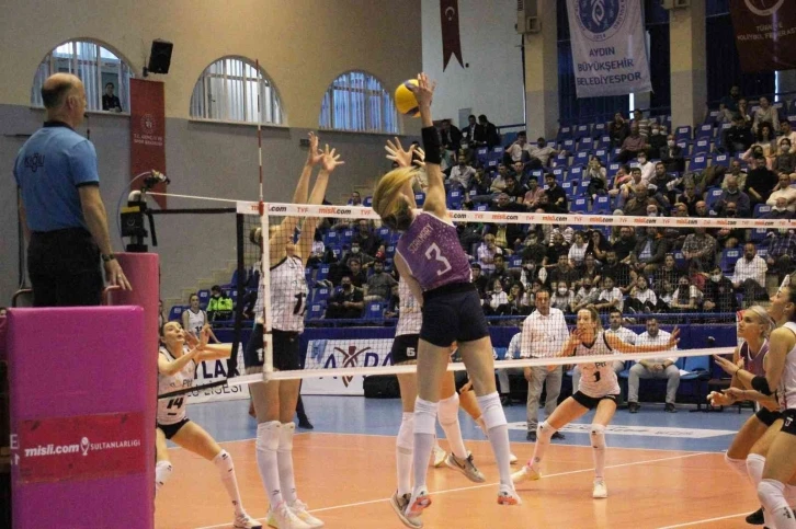 Aydın büyükşehir belediyespor, sultanlar ligi'nin play-off 5/8 etabı'nda ptt'ye 3-1 mağlup oldu.