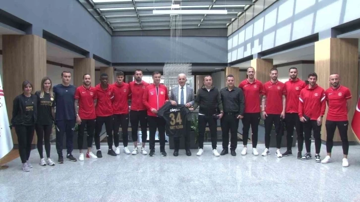 Spor Toto Süper Lig’e yükselme sevinci yaşayan Ümraniyespor’da Başkan Tarık Aksar, futbolcular ve teknik ekip, Ümraniye Belediye Başkanı İsmet Yıldırım’ı makamında ziyaret etti.