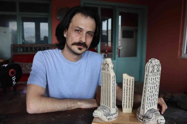 Kayseri’de yaptığı birbirinden güzel eserlerle tarihseverlerin ilgisini çeken heykeltıraş Mahmut Esat Sevilay, özellikle Türk tarihi için önemli olan ve günümüze kadar ulaşan eserlerin birebir maketini yapıyor. İçerisinde ilk ’Türk’ kelimesinin geçtiği Orhun Abideleri, Hoca Ahmet Yesevi Türbesi ve ülkenin farklı yerlerinde bulunan tarihi kümbetlerin maketlerini yapan Sevilay, maketleri tek tek eliyle işliyor.