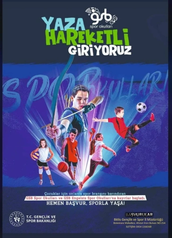 Bitlis’in Tatvan Gençlik ve Spor İlçe Müdürlüğü tarafından her yıl organize edilen GSB Spor Okulları ve GSB Engelsiz Spor Okulları kayıtları başladı.