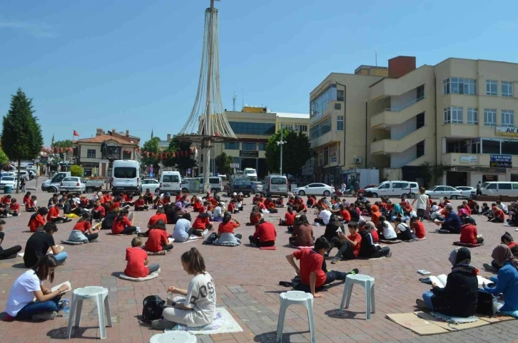 Tavşanlı İstiklal Okulu öğrencileri yanlarında getirdikleri çeşitli kitaplarla Cumhuriyet Meydanı’nda bir ders saati kitap okuma etkinliği düzenledi.