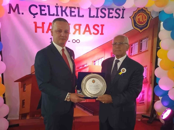 Zonguldak mehmet çelikel lisesinin kuruşunun 184’üncü yıl dönümü nedeniyle yapılan törende, cumhurbaşkanlığı yūksek istişare kurulu üyesi ve tbmm eski başkanı köksal toptan’a okula katkılarından dolayı 2022 yılı büyük ödülü verildi.