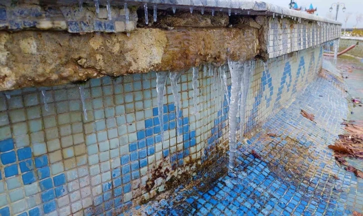 Tekirdağ’da kar yağışı yerini soğuk havaya bıraktı. Süs havuzları buz tutarken sokaklar bomboş kaldı.