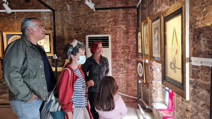 Muğla’nın Bodrum ilçesinde Halk Eğitimi Merkezi Müdürlüğü kursiyerlerinin tezhip çalışmalarından oluşan sergisi, ziyaretçilerini ağırlıyor. Bodrum Halk Eğitimi Merkezi Müdürlüğü tezhip öğretmeni Serpil Kutluğ ve 8 öğrencisinin çalışmalarından oluşan “Tezhip Sergisi”, Bodrum Belediyesi’nin destekleriyle Artemisia Sergi Salonu’nda açıldı. Sergide özenle hazırlanan 41 eser, beğeni topladı. 25 yıldır tezhip sanatı ile ilgilenen ve 14 yıldır Bodrum Halk Eğitimi Merkezi’nde tezhip öğretmeni olarak görev yapan Serpil Kutluğ, “Milli Eğitim’in ‘Her aya bir etkinlik’ çalışması çerçevesinde yapılan bir proje bu. Biz pandemi döneminde sergi yapamadık. 2 yıllık birikimimiz vardı. Bu proje çerçevesinde sergiyi açtık. 8 öğrencim 41 eserle bu sergiye katıldılar. Öğrencilerim 8 ay boyunca bin 565 saatlik uzun soluklu bir kursun ardından bu eserleri ortaya çıkardılar. Ama daha önceki dönemlerden de öğrencilerim var. Eski ve yeni öğrencilerimle birlikte bu sergiyi hazırladık. Şu anda kursta yarıyıla girmek üzereyiz” dedi. Saat 10.00 ile 19.00 saatleri arasında gezilebilen sergi, 7 Nisan tarihine kadar açık kalacak.