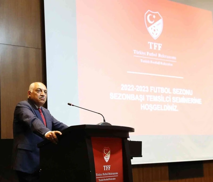 Türkiye Futbol Federasyonu Temsilciler Kurulu tarafından düzenlenen 2022-2023 Futbol Sezonu Üst Klasman, Federasyon Güvenlik ve Akreditasyon ile Klasman Temsilcileri Sezon Başı Semineri açılış töreni yapıldı. TFF Hasan Doğan Milli Takımlar Kamp ve Eğitim Tesisleri’ndeki açılış törenine TFF Başkanı Mehmet Büyükekşi, TFF Başkan Vekilleri Murat Aksu, Yusuf Günay ve Yalçın Orhan, Yönetim ve İcra Kurulu Üyeleri Müslüm Özmen ve Ali Düşmez, Yönetim Kurulu Üyeleri Hamit Altıntop, İdil Karademirlidağ Suher, Ramazan Üçdan, Talat Papatya, Volkan Can, Murat Şahin, Özen Kuzu, Süleyman Kocasert, Habil Yazıcı, Abdullah Altunkum, Cengiz Erdem, Şevket Çelik, Genel Sekreter Kadir Kardaş, TFF Temsilciler Kurulu Başkanı Gökhan Özsavaş ile temsilciler ve davetliler katıldı. Mehmet Büyükekşi: "Sizler 100. yılın temsilcilerisiniz"