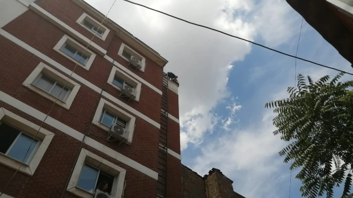 Manisa’nın Turgutlu ilçesinde bunalıma giren 17 yaşındaki bir genç, 5 katlı binanın çatısına çıkarak intihar girişiminde bulundu. Genci ikna etme çalışmaları sürerken, bir vatandaş canını hiçe sayarak gencin yanına yaklaşıp, atlamadan önce yakaladı.