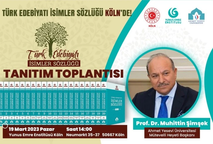 Ahmet Yesevi Üniversitesi Mütevelli Heyeti Başkanı Prof. Dr. Muhittin Şimşek, KÖLN'de Türk İsimleri Sözlüğü konusunda tanıtım yapacaktır.