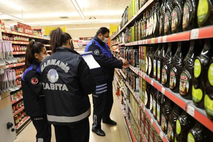 Marmaris Belediyesi Zabıta Müdürlüğü ekipleri, marketlerde rutin olarak yaptığı etiket kontrollerini sıklaştırarak hijyenik şartlar, fiyat etiketleri, kasa ile fiyat etiketi arasındaki farklar ve satılan ürünlerin son kullanma tarihi denetimlerine devam ediyor. Zincir marketler, süpermarketler ve mahalle bakkallarında kuru gıda, manav, kasap ve içecek reyonlarında etiket denetimi yapan ekipler ürünlerin son kullanma tarihlerini de kontrol etti. Ekipler 17 zincir market, 34 yerel market ve bakkalda denetim yaptı.
