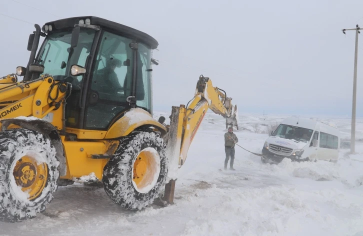 Karda mahsur kalan öğrenci servisi kurtarıldı