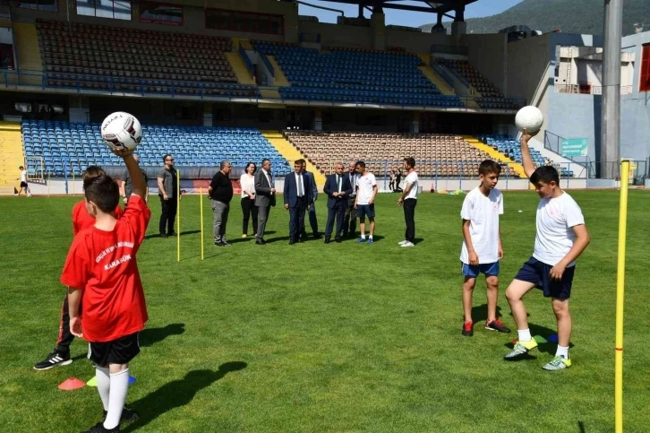 Karabük Valisi Fuat Gürel, 16 farklı branşta başlatılan ve gençlerin yoğun ilgisi ile devam eden Yaz Spor Okulları antrenmanlarına katılarak gençlerin heyecanlarına ortak oldu.