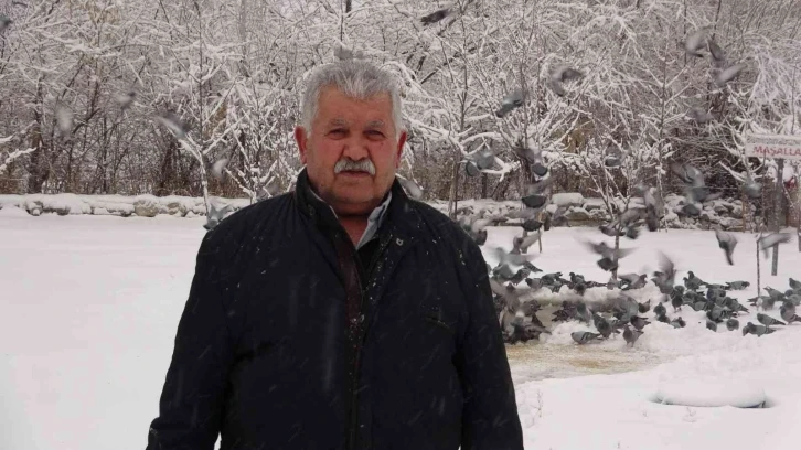 Çelebi, özellikle kar yağışının olduğu günün sabahında gün ağarmadan bahçesindeki alanda karı temizliyor. Daha sonra kuşların korkmaması için de yemleme çalışmasını önceden yapan Çelebi, güneşin doğuşuyla birlikte kanat çırparak gelen misafirlerini büyük bir keyifle izliyor. “Kuşları beslemek çok güzel”
