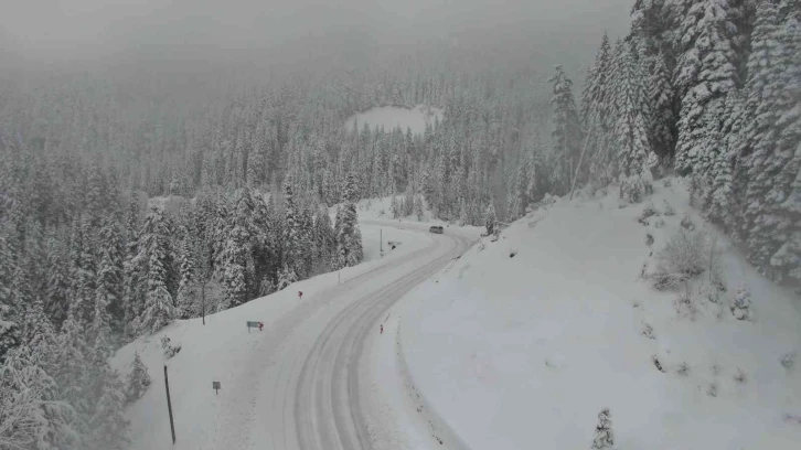 Kastamonu’nun yüksek kesimlerinde yoğun kar yağışı etkili oluyor. Kar kalınlığının 30 santimetreye ulaştığı Ilgaz Dağı havadan görüntülendi.