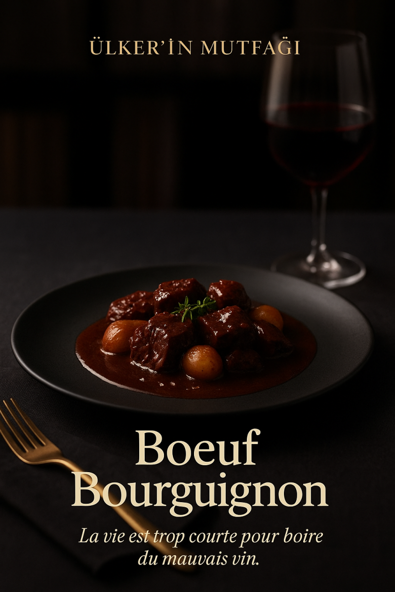 Fransız mutfağının en rafine klasiklerinden biri olan Boeuf Bourguignon, sabrın ve dengeli lezzetin yemeğidir. Dana eti, kırmızı şarap ve aromatik sebzelerle ağır ağır pişerken ortaya çıkan tat; zamana yayılan bir zarafeti temsil eder.