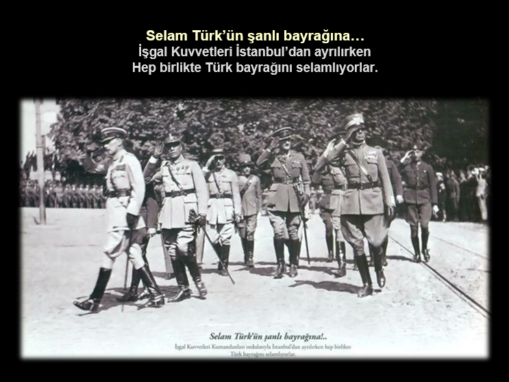Tosun, Hüseyin, “İtilaf Devletleri Son Birliklerinin 2 Ekim 1923 Tarihinde Türk Bayrağını Selamlayarak İstanbul’dan Ayrılmaları”, https://atamdergi.gov.tr/tam-metin-pdf/672/tur, Erişim Tarihi: 05.10.2025.